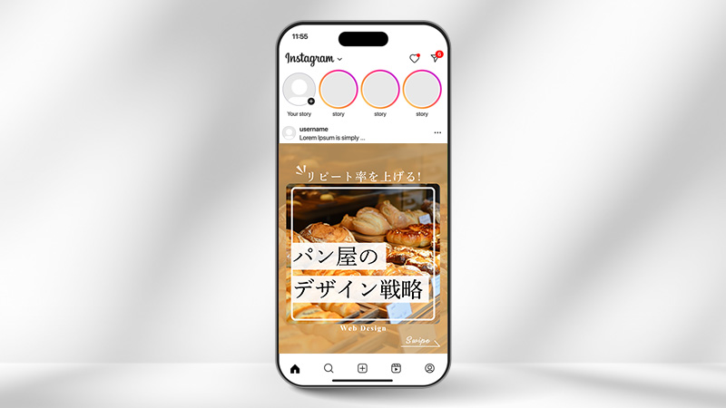 パンの魅力をしっかり伝える デザイン付きの投稿 や、続けやすい 企画の提案 を行います。